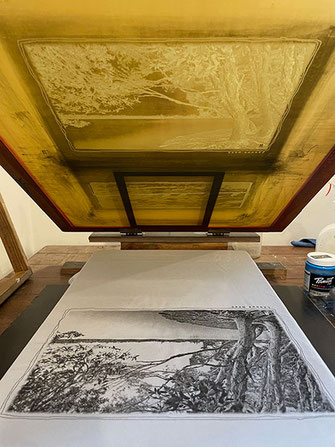 Julian hand prints his t-shirts using a process called half-tone screen printing where the ink is manually pushed into the cotton fibres.