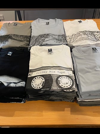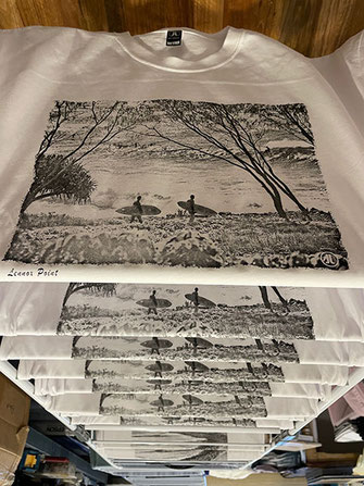 After printing, the shirt is left to dry then the ink is heated to 200°C to cure. This process ensures the print’s longevity and resistance to fading or washing out. All tees are printed to