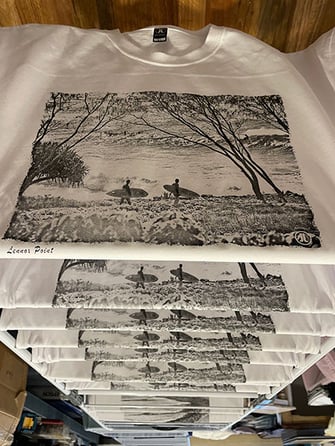 Julian prints his tees using a process called half-tone screen printing where the ink is manually pushed into the cotton fibres.